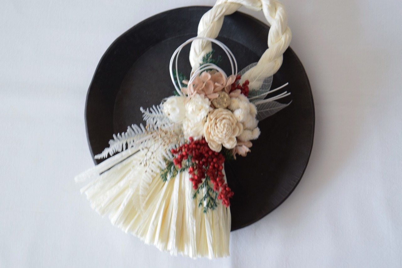 オフホワイトのしめ縄に