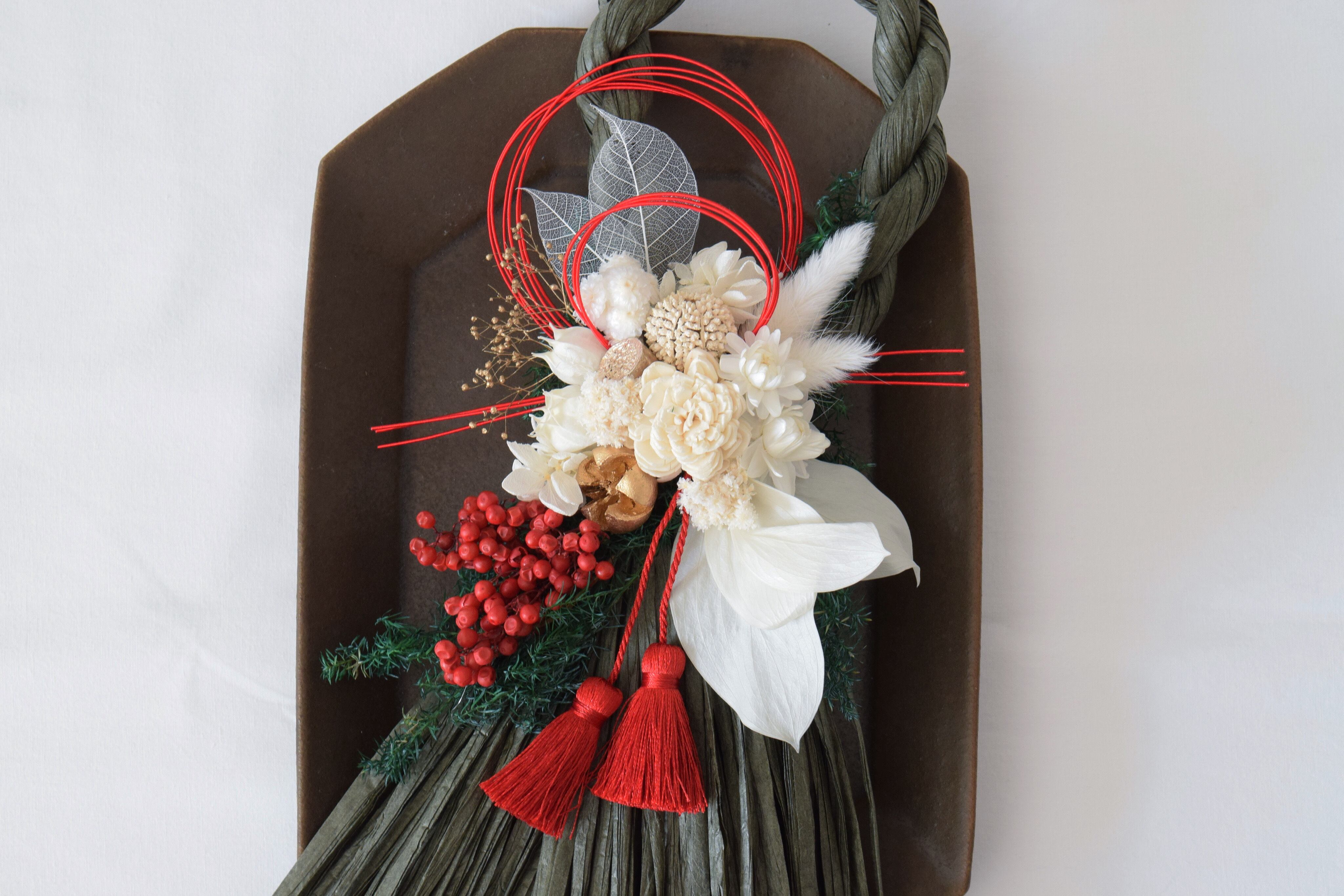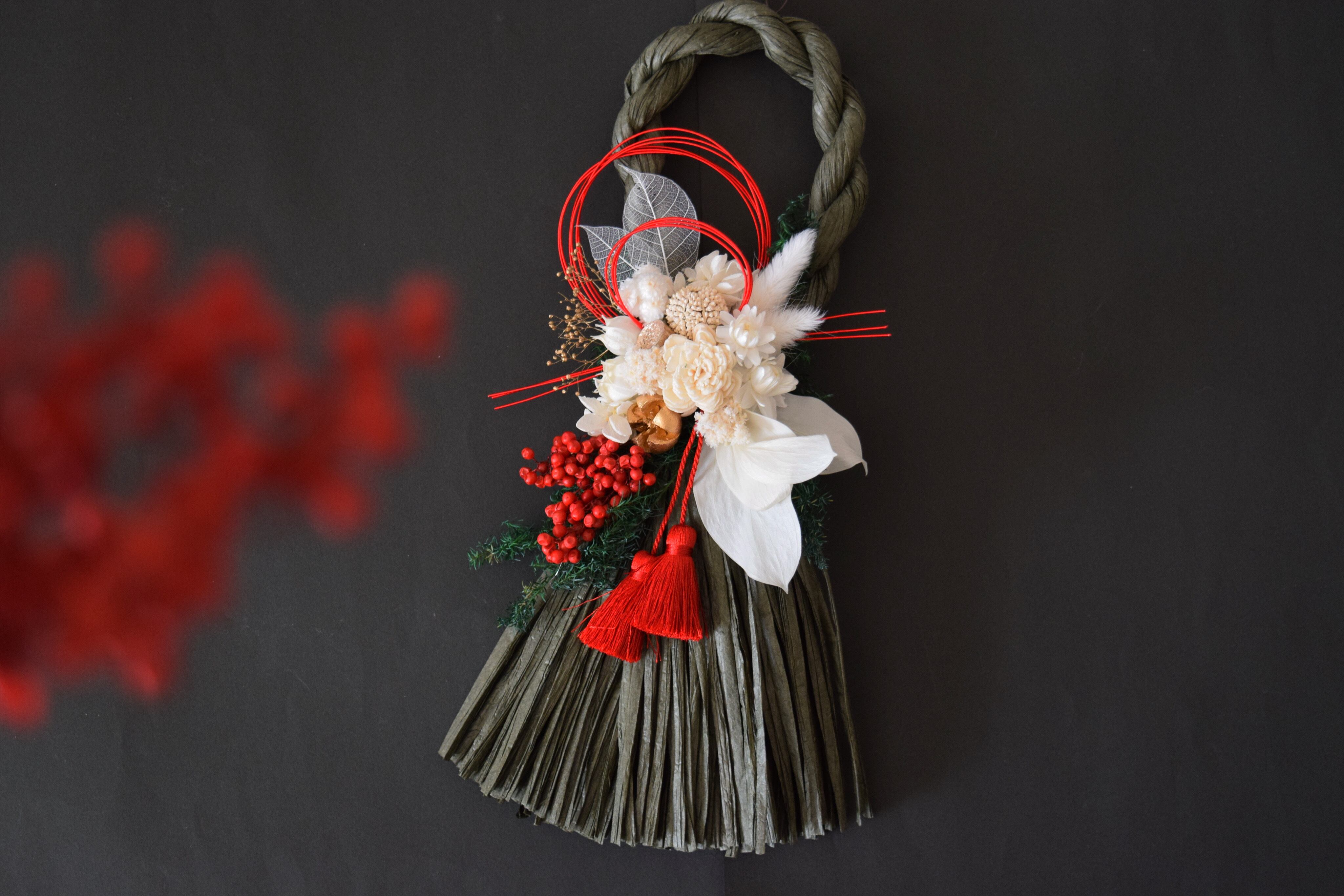 艶やかなしめ縄リースです。
